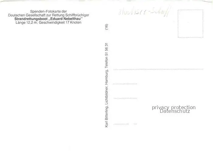 Boote Strandrettungsboot Eduard Nebelthau postalisch nicht gelaufen Erhaltung siehe scans [IrynaD87]