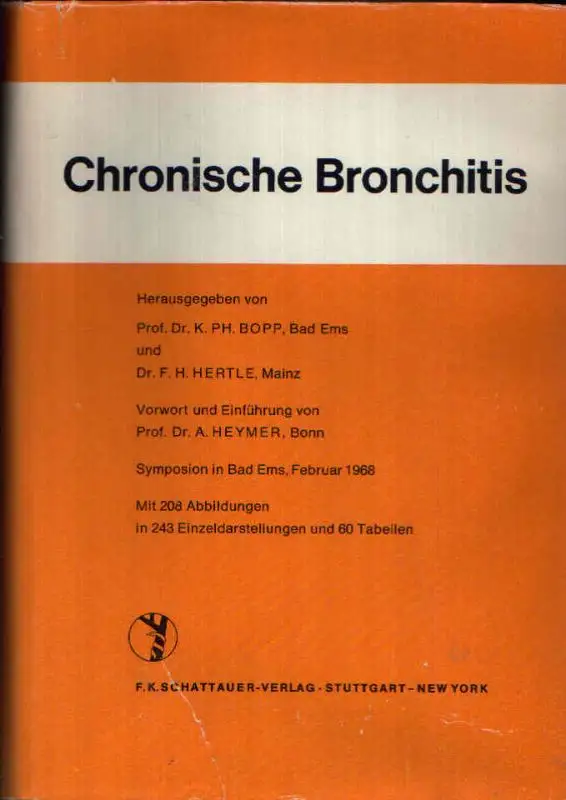 Chronische Bronchitis; K.Ph. Bopp; F.H. Hertle; Medizin; Bronchitis; Forschung; Anatomie und Physiologie des Respirationstraktes; Ätiologie und Pathogenese; Funktionsdiagnostik; Klinik; Komplikationen; Therapie; Morbidität und sozialmedizinische Faktoren; Prophylaxe und Rehabilitation