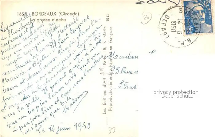 Bordeaux La grosse cloche Bordeaux postalisch gelaufen 1950 Erhaltung siehe scans [WerneD78] WernPID7