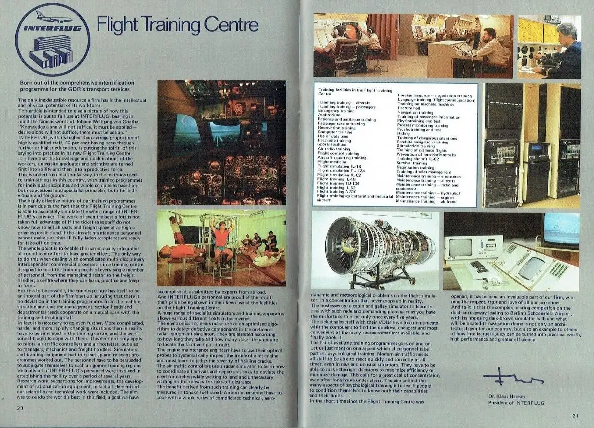 sehr guter Zustand, geringe Gebrauchs- und Alterungsspuren: Umschlag teils mit kleinen Randblessuren, Redaktionsschluss war Oktober 1988, erschienen dann wohl Anfang 1989 - INTERFLUG im 40. Jahr der DDR / INTERFLUG in the GDR's 40th year - Visitenkarte Flughafen Berlin-Schönefeld / Visiting card of Berlin-Schoenefeld Airport - INTER FLUG auf Kurs 2000 / INTERFLUG sets a course for the year 2000 - Schweres leichtgemacht / Where's the problem? - Kairo — seit Jahrhunderten ohne Konkurrenz / Cairo — unrivalled for centuries - Das Fliegertrainingszentrum der INTERFLUG / INTERFLUG's Flight Training Centre - Startklar für Ihre Messegeschäfte / All set for business at the trade fair - Liebe Fluggäste ... Dear Passengers ... - Flugzeugtypen / Typs of aircraft - Wir wissen, wie das Wetter wird / We know, what the weather's going to be like - Einkaufen an Bord / Shopping on board - Die Sauerstoff-Mehrschritt-Therapie / The Multi-phase Oxygen Treatment - Praxisorientiert: Fernerkundung der Erde / Practice-oriented: Remote sensing of the Earth - Streiflichter durch die Luftfahrtgeschichte / Glimpses into the history of aviation, kartoniert, ca. 20 x 28,5, 48 Seiten mit zahlreichen Bildern