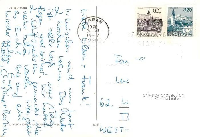 Borik_Zadar Hotel Strand Kueste Fliegeraufnahme postalisch gelaufen 1976 Erhaltung siehe scans [FriedD77] Frierer
