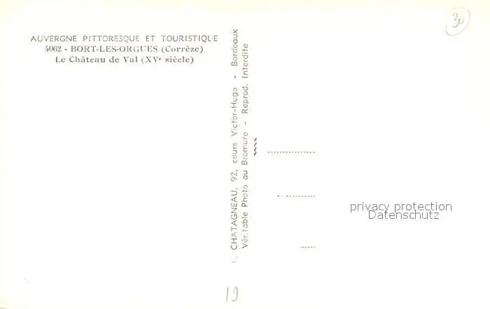 Bort-les-Orgues Chateau de Val XVe siècle Bort-les-Orgues postalisch nicht gelaufen 1921-1965 Erhaltung siehe scans [FriedD77] Frierer