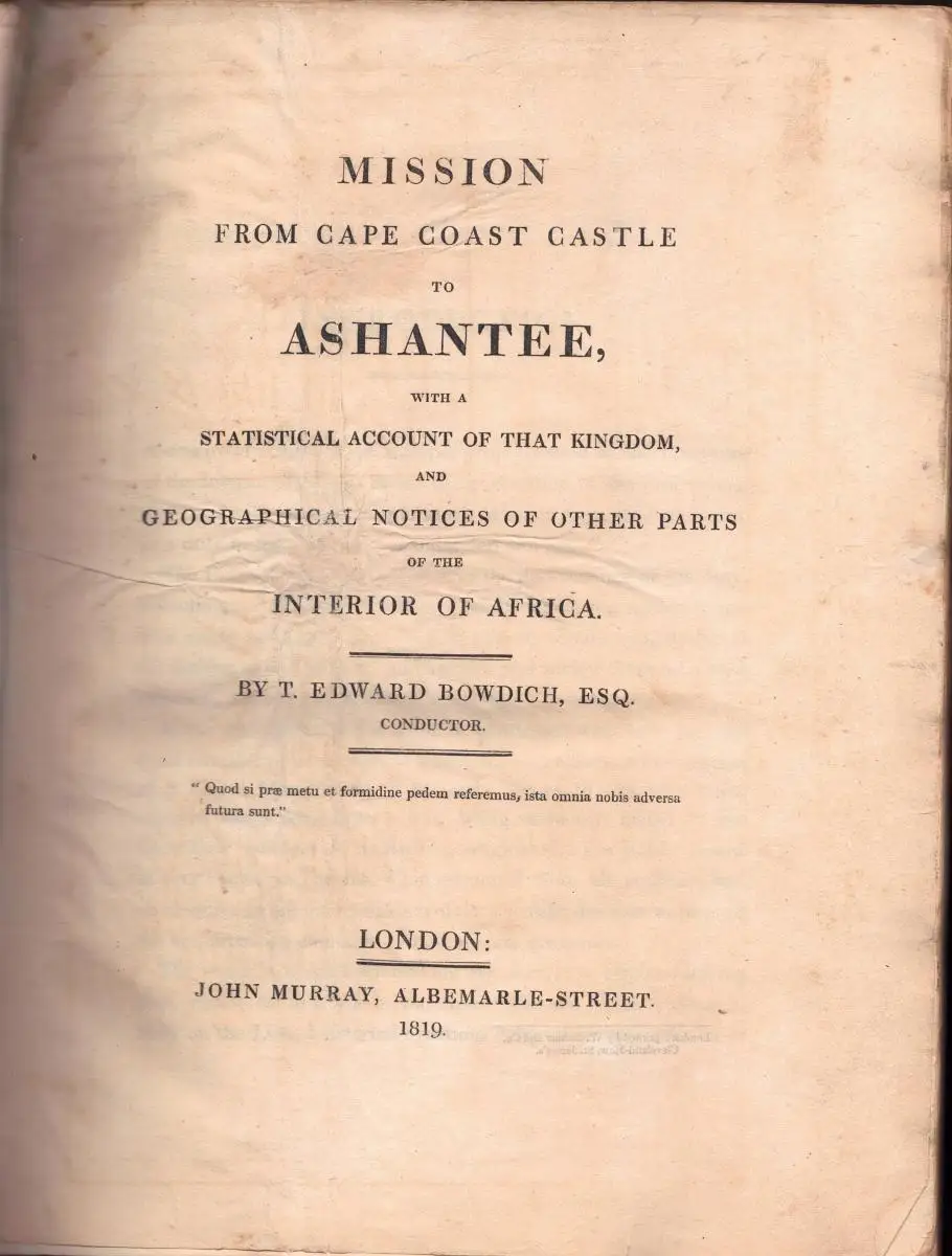 Bowdich, Thomas Edward: Mission from Cape Coast Castle to Ashantee : with a statistical account of that Kingdom and geographical notices of other parts of the interior of Africa.