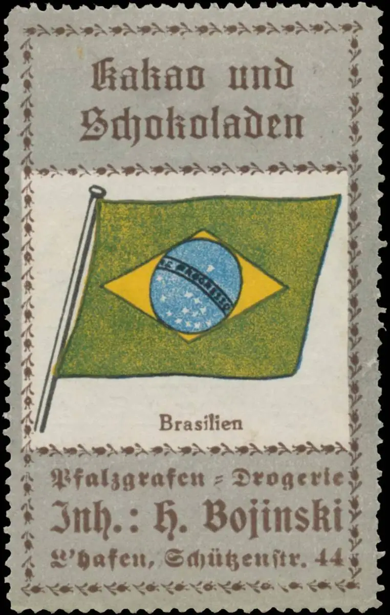 Kakao, Schokolade, Pfalzgrafen Drogerie Inhaber: H. Bojinski , Größe/Zustand: 6x4 , leicht fleckig, Original alte Reklamemarke die seinerzeit für die Werbung benutzt wurde