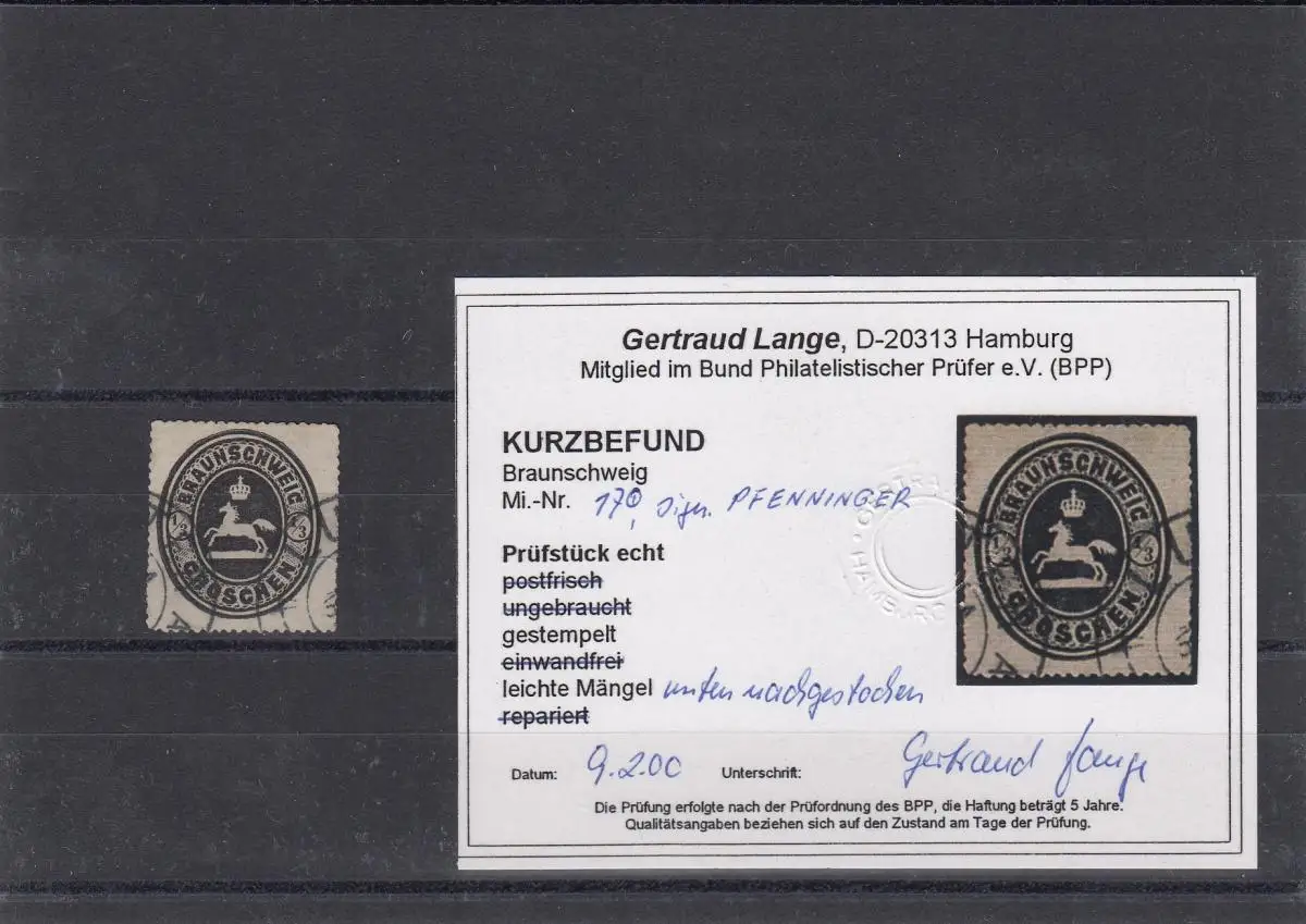 Braunschweig: MiNr. 17, gestempelt, BPP Befund