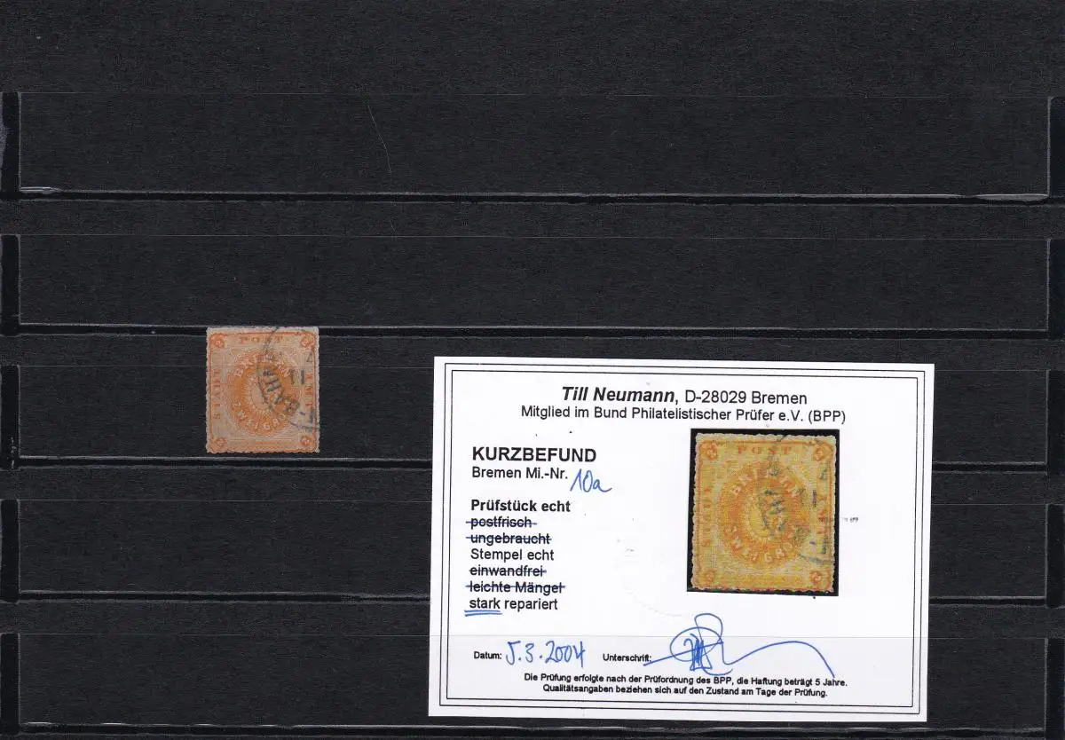 Bremen: MiNr. 10a, gestempelt, BPP Befund