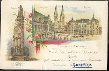 Bremen. Rathaus, Dom, Börse, Roland - Gelaufen ca. 1900. (NPLZ 28000)
