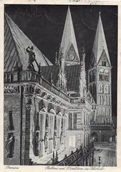 Bremen Rathaus und Domtürme im Flutlicht o 5.7.1937