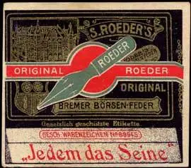 Original Roeder. Jedem das Seine. Tinte, Größe/Zustand: 5x6 , guter Zustand, Original alte Reklamemarke die seinerzeit für die Werbung benutzt wurde