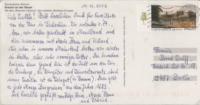 Postleitzahl:56814 (neu) / W 5591 (alt)