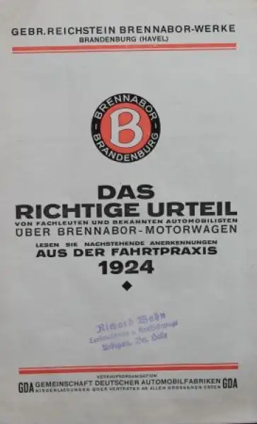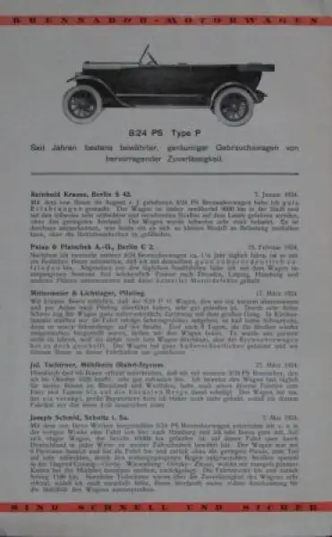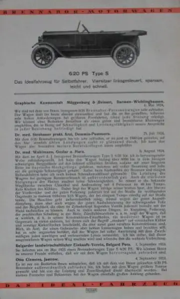 Brennabor Motorwagen Modellprogramm 1924 "Das richtige Urteil" Automobilprospekt (8059)