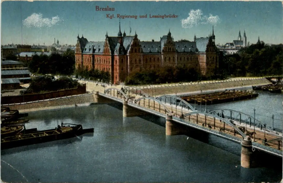 Breslau - Kgl. Regierung und Lessingbrücke -489412