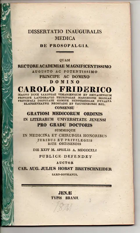 Bretschneider, Karl August Julius Horst: aus Gotha: De prosopalgia. Dissertation.