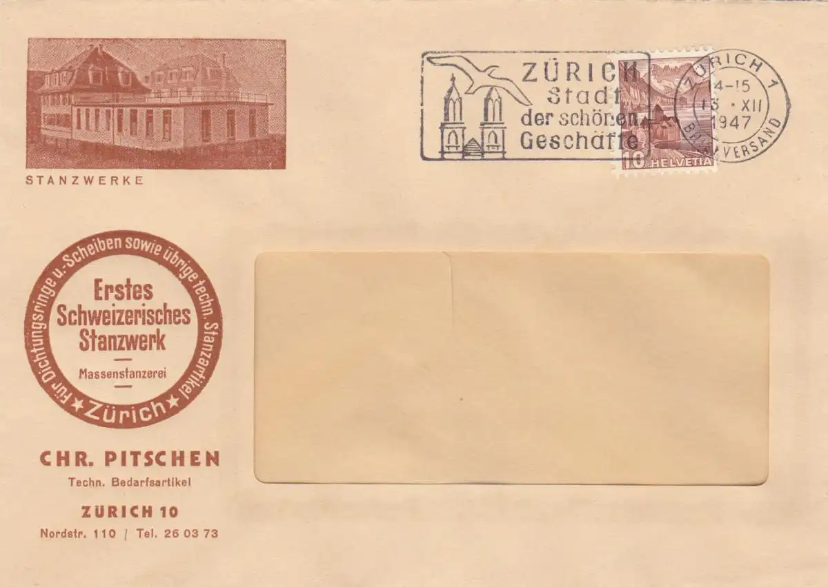 Brief 1947 Zürich, Stanzwerke, Dichtungen