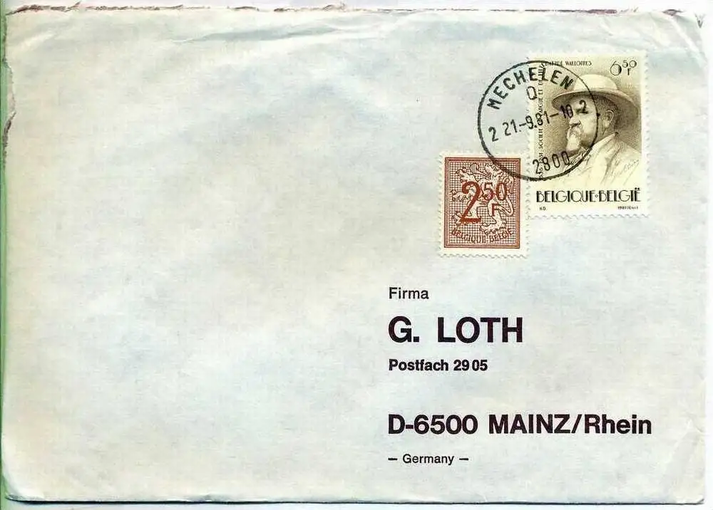 Brief, 21.09.1981, MECHELEN – Mainz, Mischfrankatur, sauber gest., Maße: 16,3 x 11,5 cm