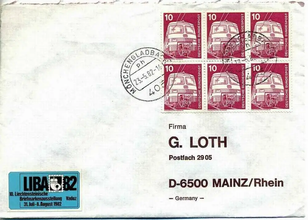Brief, 23.05.1982, Mönchengladbach – Mainz, Mischfrankatur, sauber gest., Maße. 16 x 11,5 cm