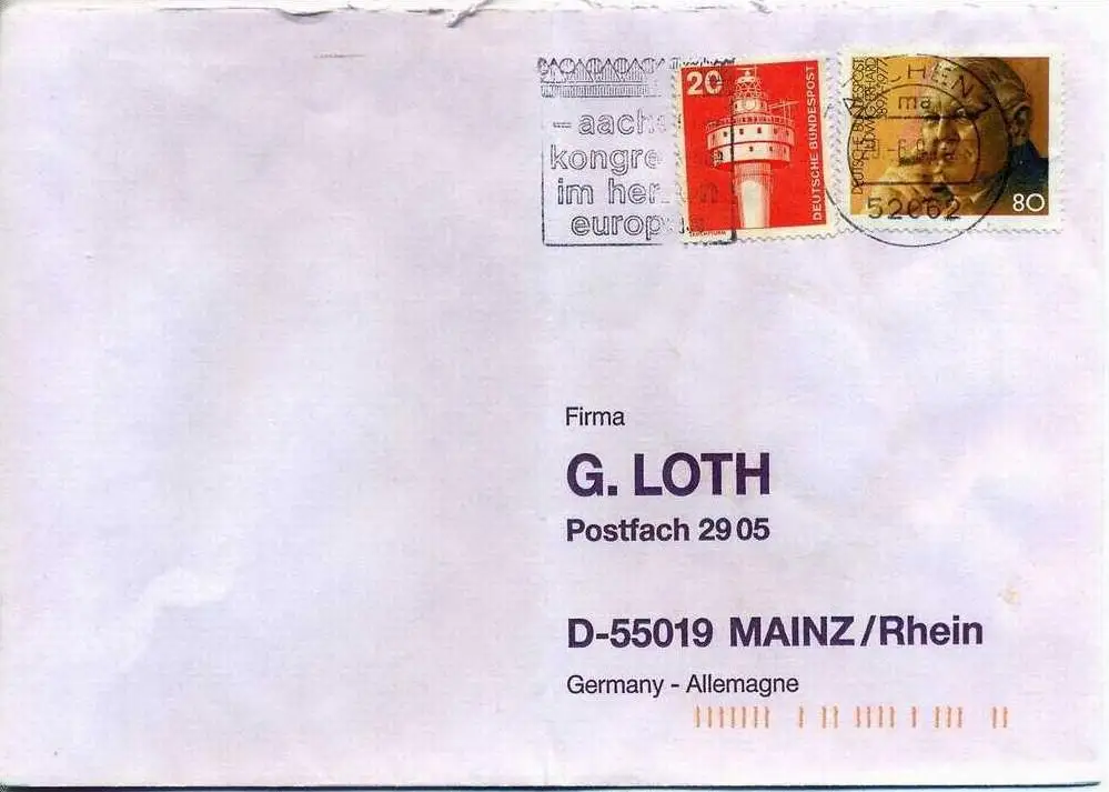 Brief, 29.06.1991, AACHEN 1 – MAINZ, Mischfrankatur, sauber gest., Maße: 16 x 11,5 cm