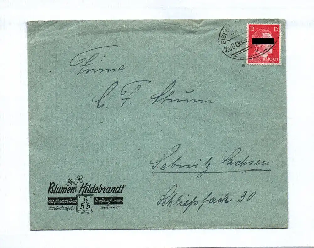 Brief Blumen Hildebrandt Hildburghausen 1941