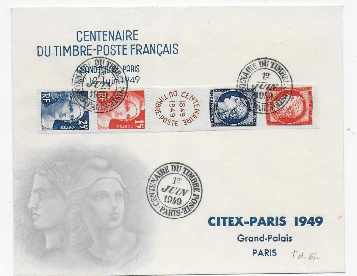 Brief: Centenaire du Timbre-Poste Francais: 11.6.1949 Paris - Philatelie