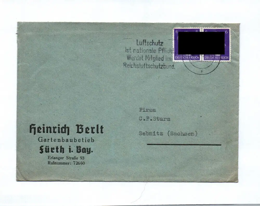 Originaler, leerer Brief. HINWEIS: Schwärzung auf dem Original nicht vorhanden (nur Abbildung)