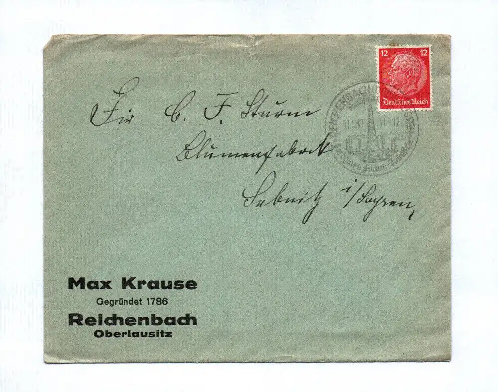 Brief Max Krause Reichenbach Oberlausitz 1941