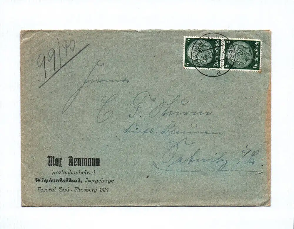 Originaler, leerer Brief. HINWEIS: Schwärzung auf dem Original nicht vorhanden (nur Abbildung)