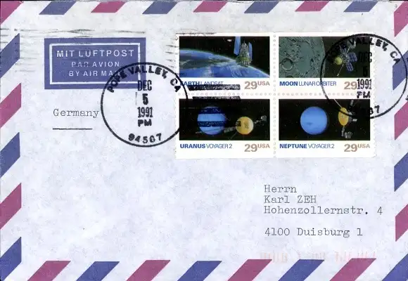 Brief Raumfahrt USA, Flugpost, Pope Valley