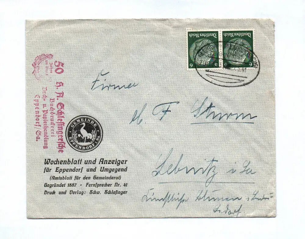 Brief Wochenblatt und Anzeiger Eppendorf 1941