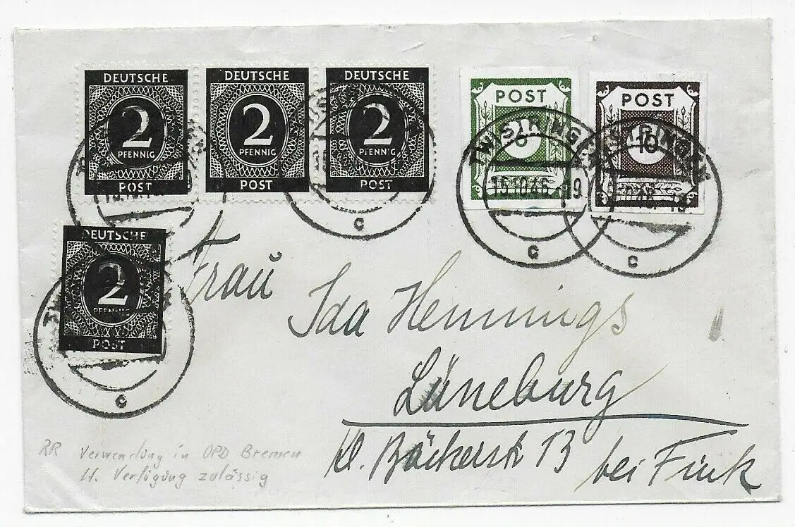 Brief von Twistringen 1946 nach Lüneburg: lt. Verfügung zulässig