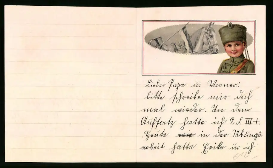Briefkopf Soldaten, Kind als Husar in Uniform mit Kolpak