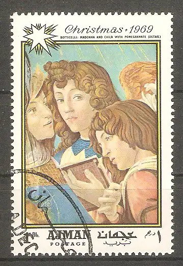 Briefmarke Ajman Mi.Nr. 488 A o Weihnachten 1969 / "Madonna mit dem Granatapfel" von Sandro Botticelli #20251960