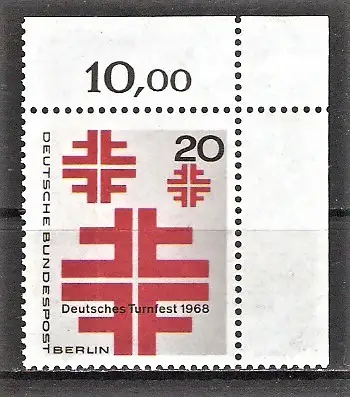 Briefmarke Berlin Mi.Nr. 321 ** BOGENECKE o.r. / Deutsches Turnfest Berlin 1968