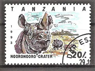 Briefmarke Tanzania Mi.Nr. 1607 o Nationalparks 1993 / Nashorn