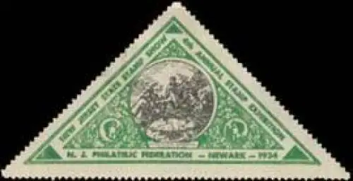 New Jersey State Stamp Show and Exhibition, Briefmarken-Ausstellung, Dreieck, Größe/Zustand: 4x7 , guter Zustand, Original alte Reklamemarke die seinerzeit für die Werbung benutzt wurde