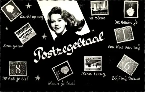 Briefmarken Ak Briefmarkensprache, Frauenportrait, Niederlande