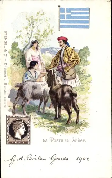 Briefmarken Ak Die Post in Griechenland, Griechischer Postbote, Tracht