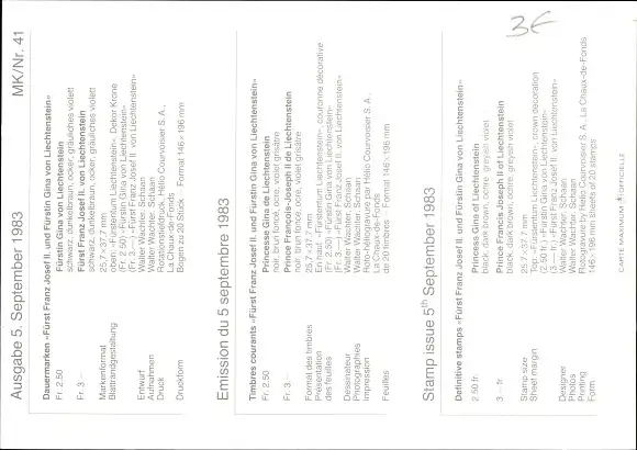 Briefmarken Ak Fürst Franz Josef II von Liechtenstein, Portrait, Sonderstempel Pilgerfahrt 1983