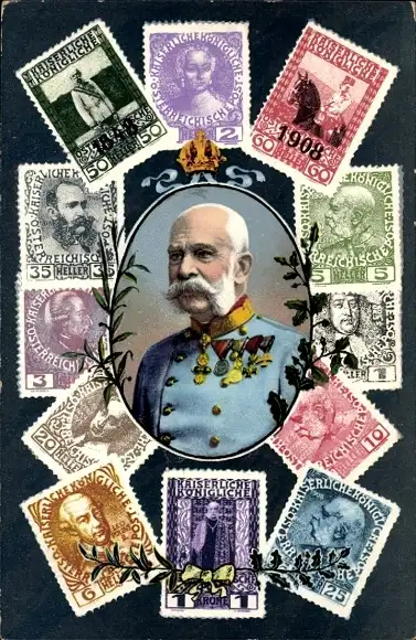 Briefmarken Ak Kaiser Franz Joseph I., Portrait, Uniform, Orden