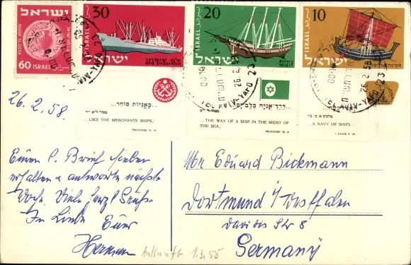 Zustand, siehe Scan, gelaufen, 1958 - ca 15 cm X 10 cm