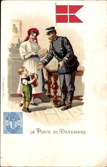 Briefmarken Litho Die Post in Dänemark, Postbote