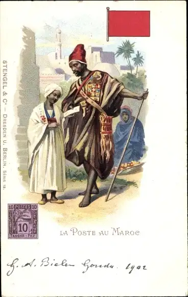 Briefmarken Litho Die Post in Marokko, Postbote, Araber, Maghreb