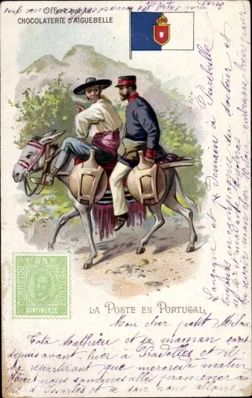 Briefmarken Litho Portugal, La Poste en Portugal, Briefträger, Maultier