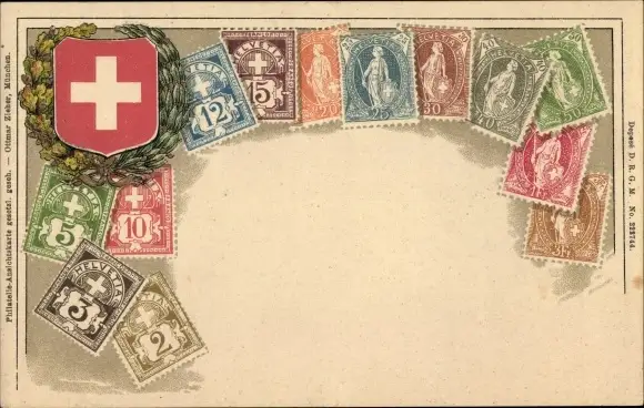 Briefmarken Litho Schweiz, Wappen, Helvetia