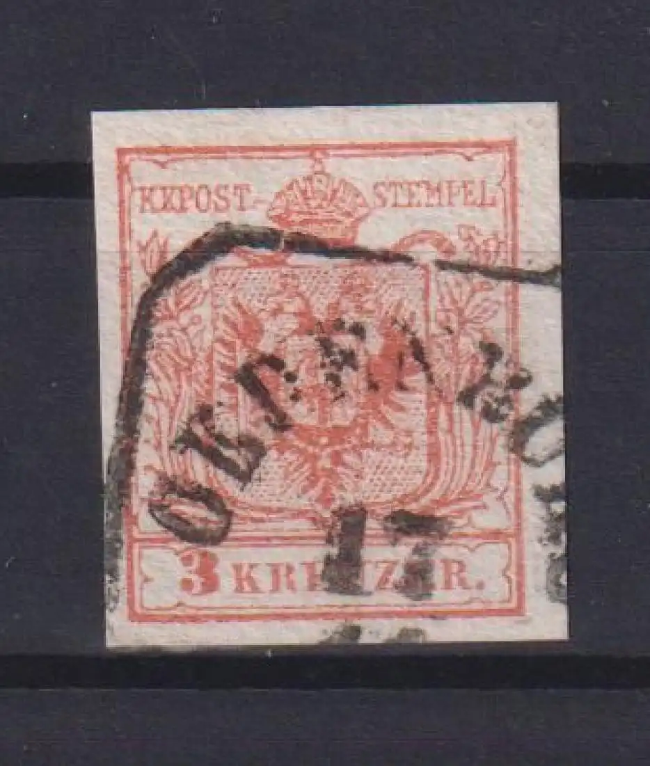Briefmarken Österreich Nr. 3 3 Kreuzer rot Kaiserreich Ausgabe 1850 Wappen