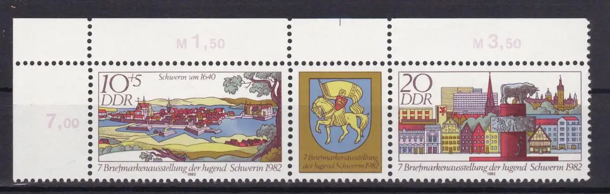 Briefmarkenausstellung der Jugend Schwerin 1982 Zusammendruck Eckrandstück **