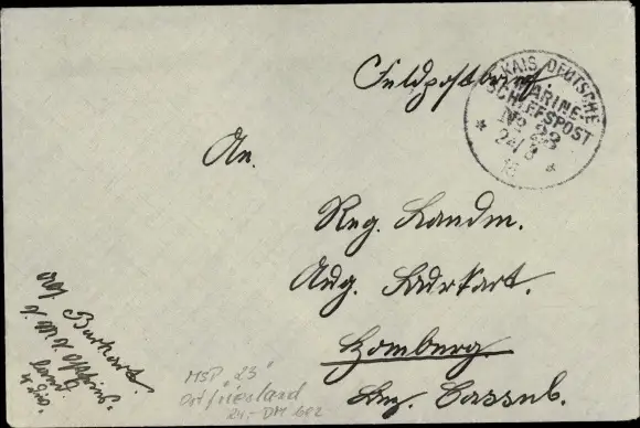 Briefumschlag Stempel Marinepost MSP Nr. 23, Linienschiff SMS Ostfriesland