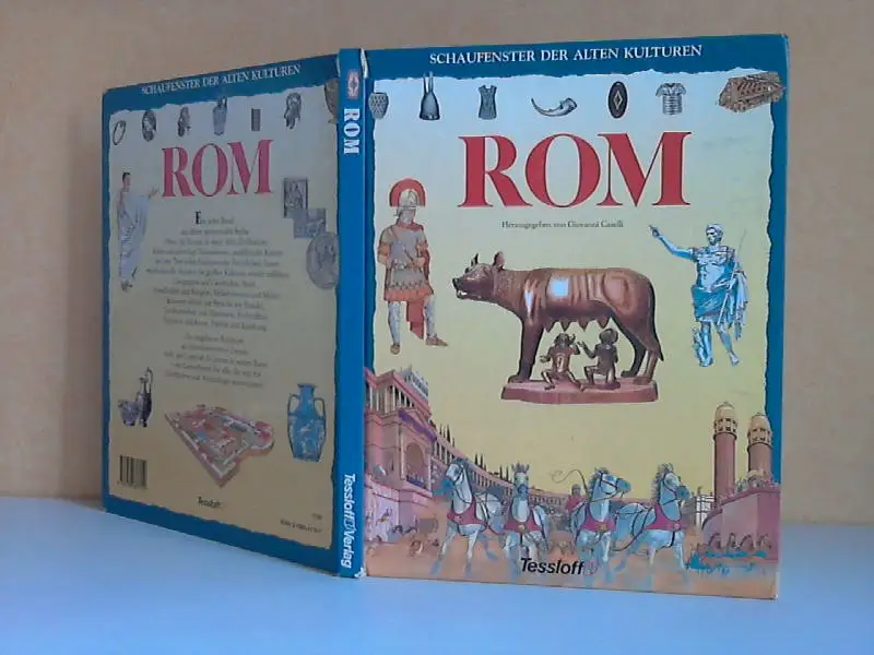das Buch stammt aus einer Haushaltsauflösung, gebräunt, fleckig, Einbandecken mit Bestoßungen, der Rücken ist oben und unten etwas kaputt, aus dem Inhalt: Italien: Geographie, Klima, Vegetation - Die Bevölkerung Italiens in vorrömischer Zeit - Die Anfänge Roms - Die Hauptereignisse der römischen Geschichte - Die Ausdehnung des Imperiums - Die Verwaltung der eroberten Gebiete - Wichtige Männer der römischen Geschichte - Die drei Klassen der römischen Gesellschaft - Der römische Staat: Volk, Verfassung und Senat - Götter, Priester und Riten - Rom, die Stadt des Augustus - Das Forum - Das Leben in der Stadt: Straßen, Geschäfte, Märkte - Die Thermen - Das römische Haus - Hausrat - Ein römisches Landhaus - Der Alltag einer Bürgerfamilie - Das Leben der Sklaven - Die Ernährung - Landwirtschaft - Geräte des Bauern - Handwerk und Gewerbe - Straßen und Transportwesen - Der Bau von Brücken und Aquädukten - Der Bau der Tempel - Handelswege und Münzsystem - Der Hafen von Ostia - Die Handelsmarine - Die Kriegsflotte - Das Heer - Militärische Ränge und Feldzeichen - Das Leben der Legionäre - Waffen und Rüstungen - Die Gladiatoren - Amphitheater und Schauspielkunst - Die öffentlichen Spiele - Schrift, Bücher und Bibliotheken - Die Erziehung: Das Leben der Schüler - Die Künste: Bildhauerei, Malerei und Mosaiken - Keramik, Silberwaren, Glas und Schmuck - Hochzeit, Geburt und Tod - Worterklärungen Beschreibung vom Antiquariat Ardelt 1l5a ISBN-Nummer: 3788607157 Antiquariat Ardelt