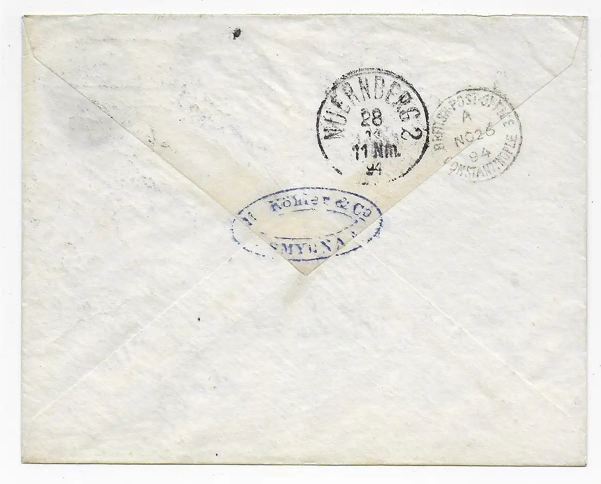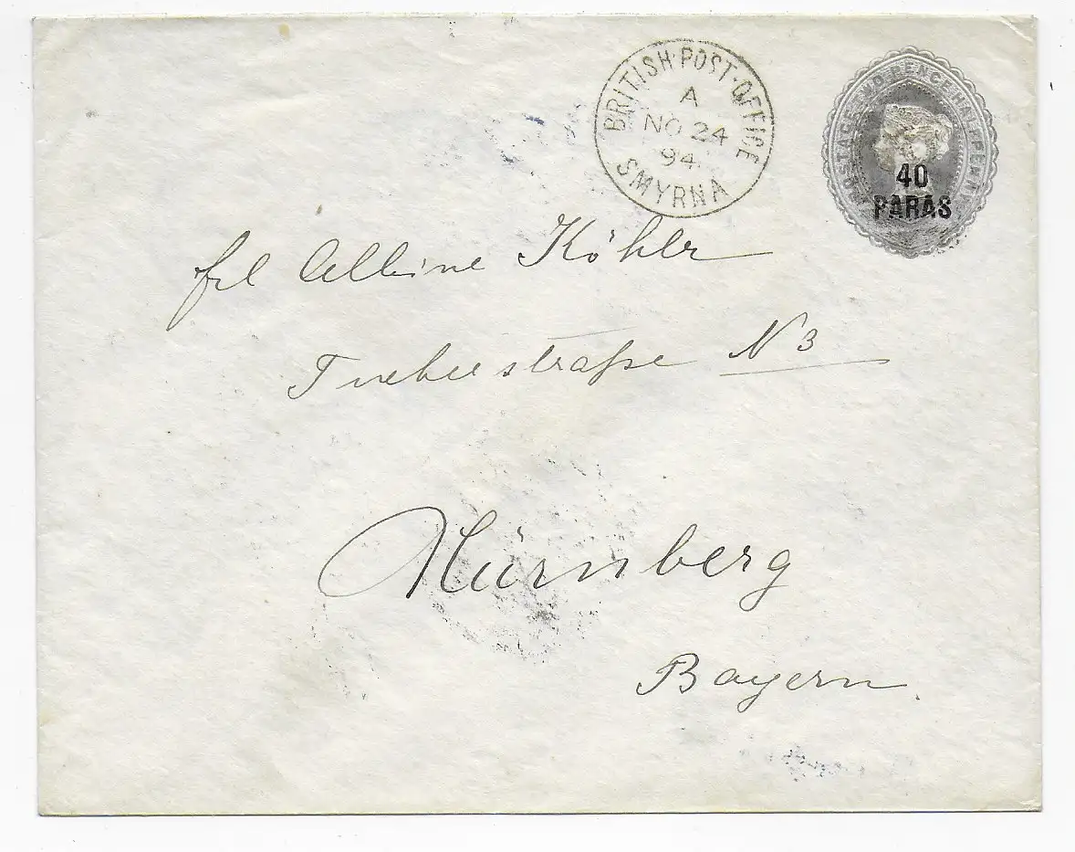 British Post office Smyrna nach Nürnberg, 1894, Ganzachenbrief