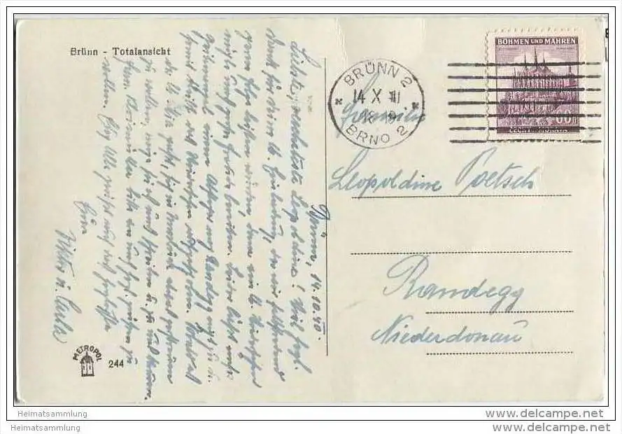 Brno - Brünn - Gesamtansicht - Foto-AK - leichte Gebrauchsspuren (E37299) gel. 1940
