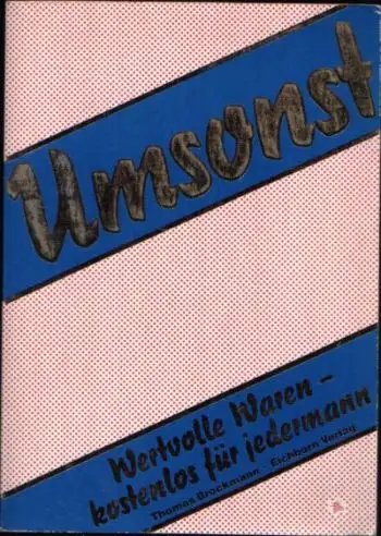 Umsonst; Wertvolle Waren kostenlos für jedermann; Ernst Brockmann; kostenlos; Haushalt; Mode, Freizeit; Unterhaltung; Dienstleistungen; Geschenke; Schriftverkehr; Schnorrer; schnorren; Abstauber; abstauben; Hobby; Freizeit; Ratgeber